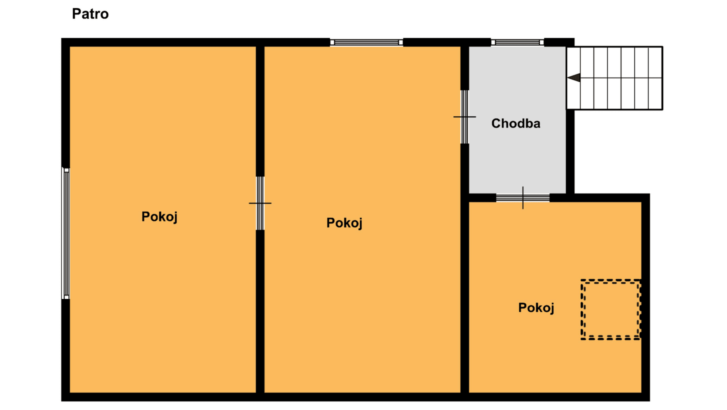 Důležitá poznámka: V horním patře jsou dva pokoje (jak jsem již zmiňoval příčku), vedle nich je menší místnost se střešním oknem. Tato místnost může sloužit jako další menší pokoj, ale zajímavé je, že zde jsou již vyvedeny odpady a trubky, takže ji lze snadno přeměnit na koupelnu s WC pro horní patro. Dům tak nabízí více možností využití – může zůstat v současné podobě, ale také se může snadno přizpůsobit vašim potřebám. Například si můžete horní patro zařídit jako oázu klidu s velkou ložnicí, šatnou a koupelnou, zatímco dole zůstane pokoj například pro děti.